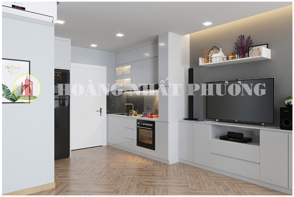 Dưới bàn tay vàng của đội ngũ kỹ sư thiết kế nội thất Hoàng Nhất Phương, căn hộ này được sắp xếp một cách khoa học và đảm bảo tính thẩm mỹ. Từ việc bố trí cho đến sắc màu được lựa chọn một cách kỹ lưỡng. Cùng điểm qua từng không gian bên dưới nhé!
