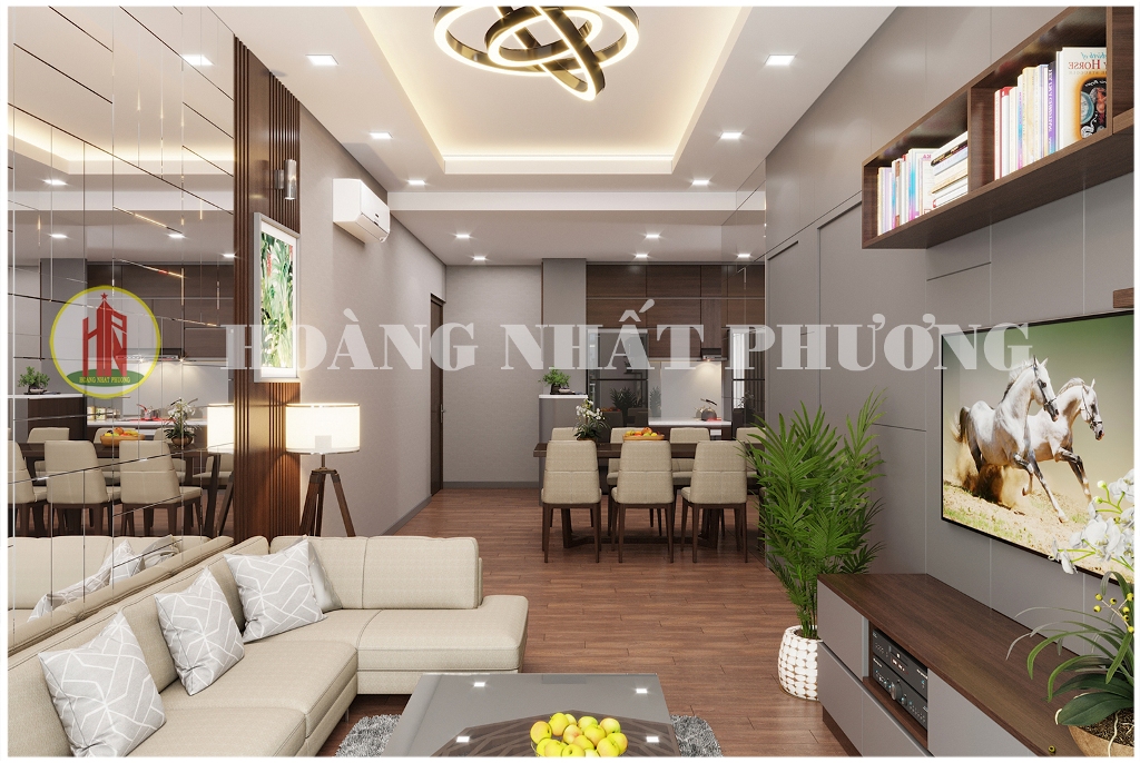 Dưới bàn tay vàng của đội ngũ kỹ sư thiết kế nội thất Hoàng Nhất Phương, căn hộ này được sắp xếp một cách khoa học và đảm bảo tính thẩm mỹ. Từ việc bố trí cho đến sắc màu được lựa chọn một cách kỹ lưỡng. Cùng điểm qua từng không gian bên dưới nhé!