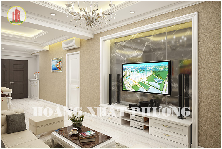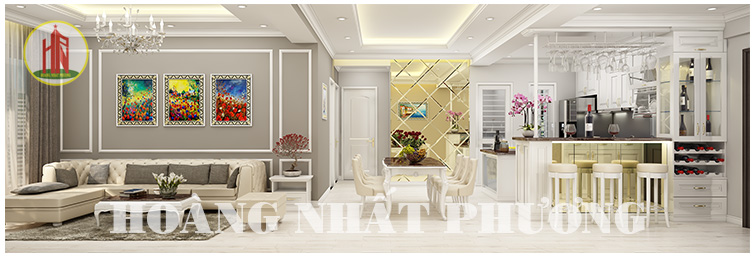 Nhìn chung thiết kế nội thất nhà đẹp thì phòng khách là điểm chú ý nhiều nhất. Chính vì thế, chúng tôi đã tạo nên sự khác biệt cho không gian này. Các sản phẩm phục vụ nhu cầu người tiêu dùng được bố trí một cách khoa học, tiện nghi. Nội thất không gian phòng khách được thiết kế theo phong cách tân Cổ Điển nên chắc chắn sẽ mang đến không gian sang trọng nhất cho gia chủ. Bên cạnh đó tông màu trắng được phân bố hài hòa, nhấn nhá giấy dán tường cùng vách gạch, cây cảnh, tranh treo, đèn pha lê hợp lý tạo nên không gian trang trọng và ấm áp nhìn là thích ngay từ đầu.