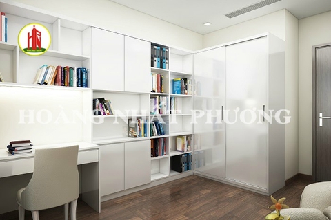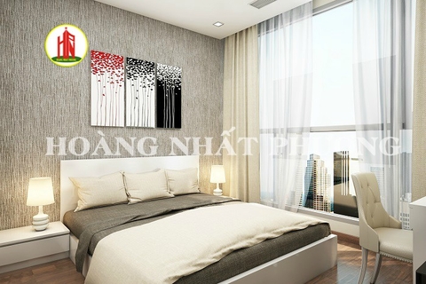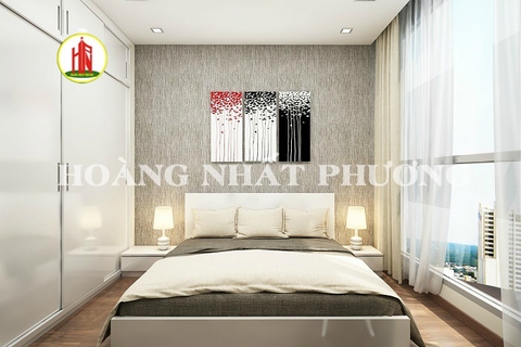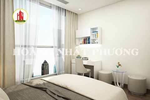 Bạn có thấy hình ảnh phòng ngủ số 1 tựa như thiên đàn qua loạt ảnh trên không, bạn có thể ngắm thành phố qua khung cửa kính trong veo khi vắt tấm rèm qua một bên. Giường ngủ được bố trí một cách hợp với phong thủy, với gam màu trắng tinh khôi nhã nhẹn thật dễ chịu. Điểm lên cái nền trắng ấy là vài bức tranh treo tường được khắc họa, hoa văn mỹ miều tạo nên sắc tươi tắn cho không gian. Ti vi, điều hòa, kệ sách, bàn, ghế, tủ đựng đồ,…được bố trí rất đẹp mắt và gọn gàng, tiện lợi cho gia chủ.